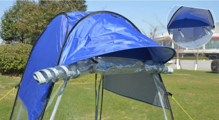 Unique duck tongue design, to prevent the rain fell into the tent, shade to prevent dazzling, poles more convenient