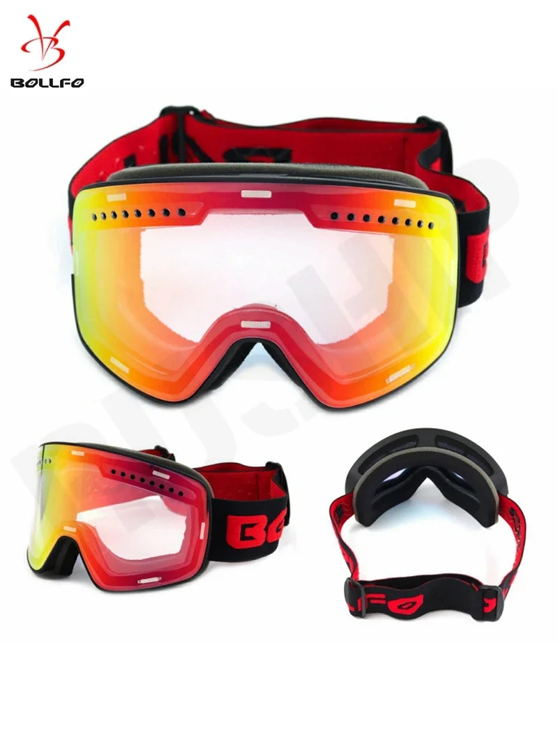 BOLLFO Brand Magnetic Ski Glasses Double Lens mountaineering glasses UV400 Anti-fog Ski Goggles Men Women snowmobile spectacles