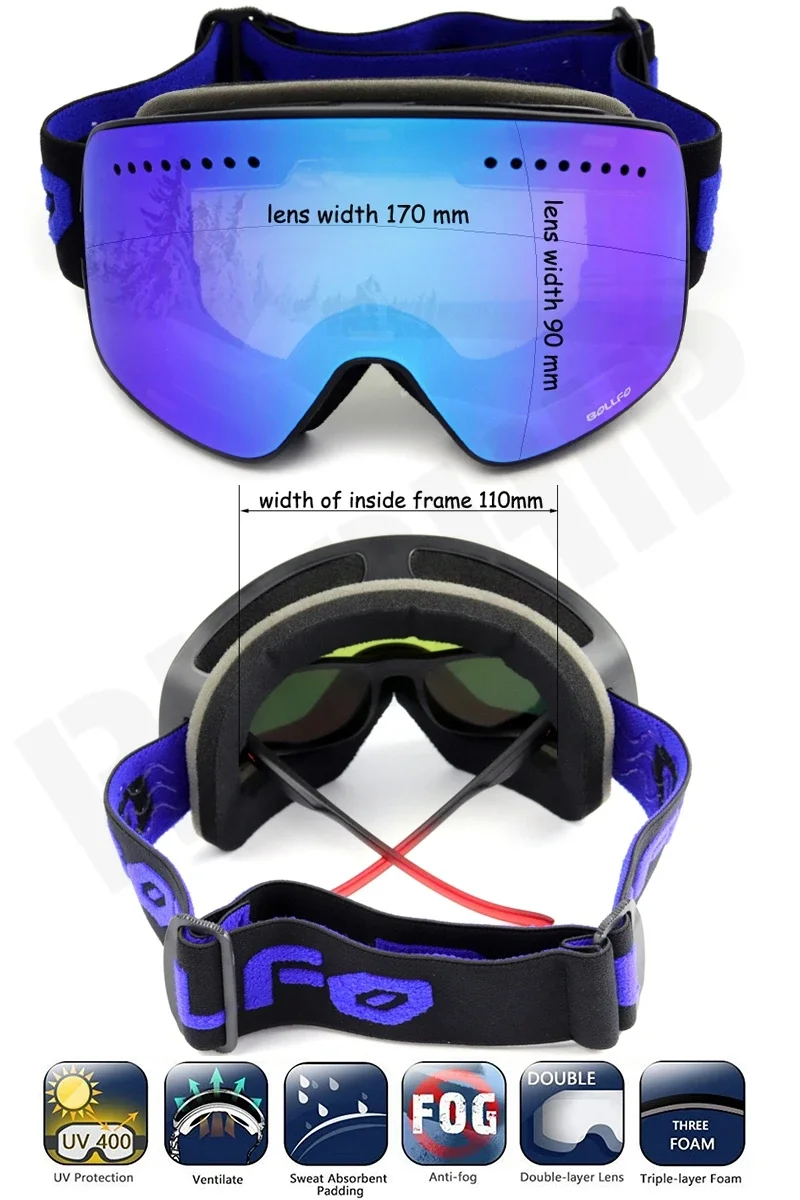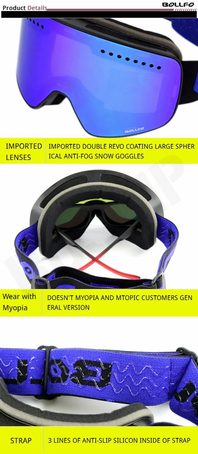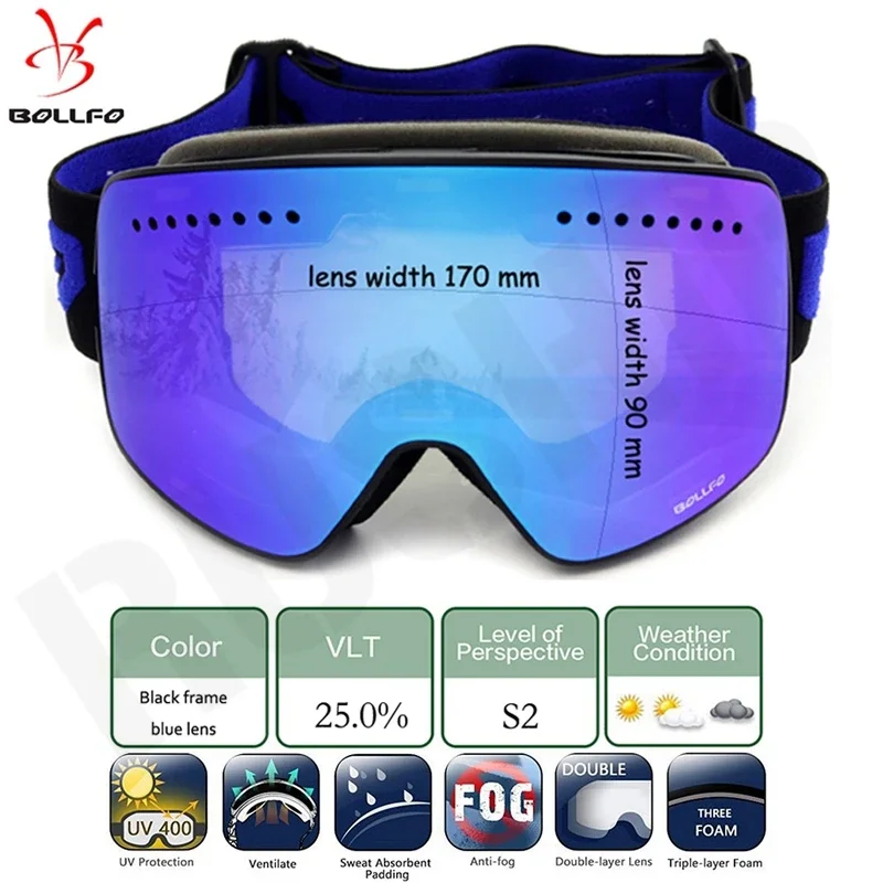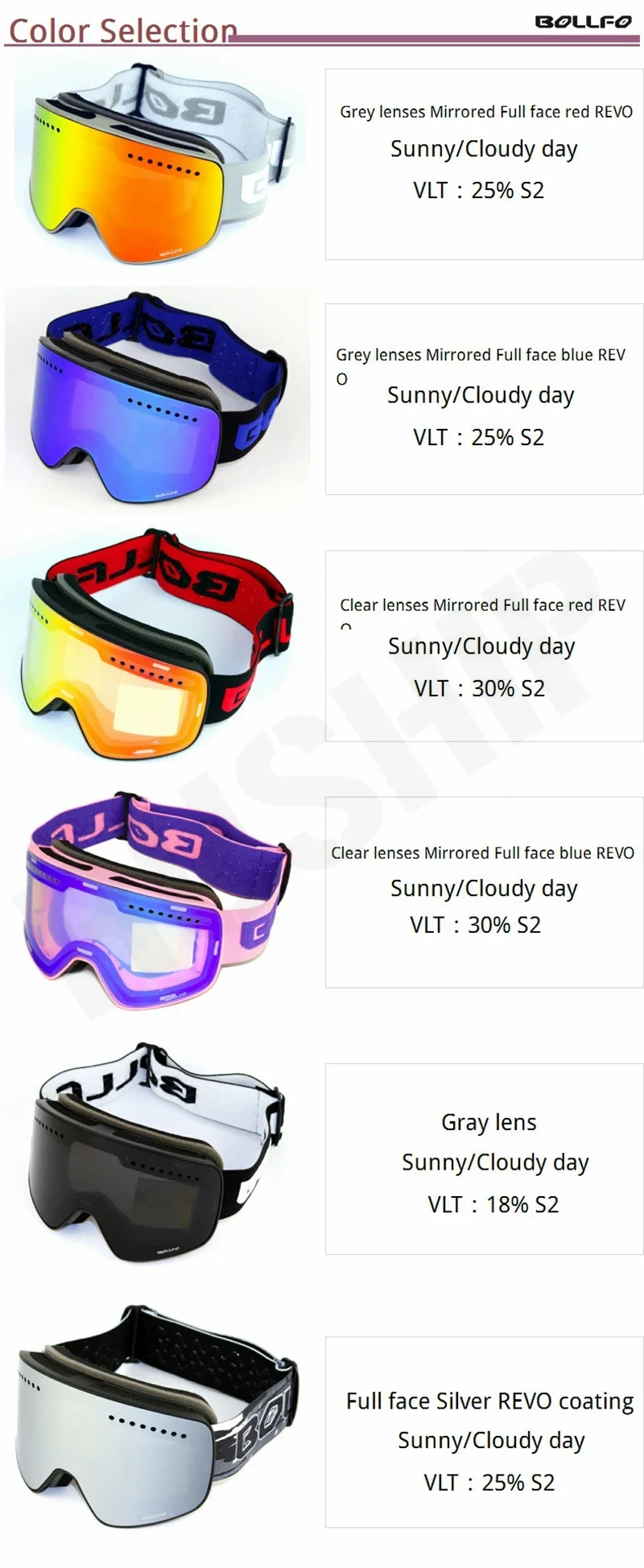 Intended Use: Due to the strong sunlight, reflected light from snow mountain plus cold wind that stimulate the eyes, we suggest you choose a security professional ski goggles while the brand "BOLLFO" is your best choice. BOLLFO ski goggle is more fit for your face and can prevent your eyes from the heavy wind. The lens is made from imported material and its mirrored coating is hardened, scratch-resistant and abrasion-proof. The goggles are 100% Anti-UV, play a key role in eyes protection.