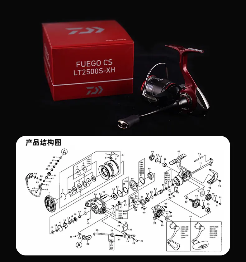 DAIWA 2025 New FUEGO CS LT Spinning Reel 5.3/5.7/6.2:1 175-325g Max Drag 12kg Fishing Reel For Seawater Freshwater
